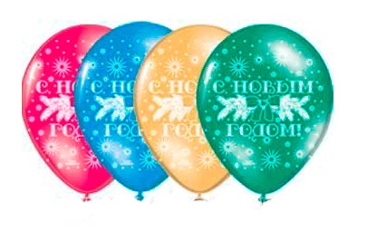 Высококачественный шар из натурального латекса. Ассорти из 10-12 цветов в случайном соотношении одного типа - пастель - матовый оттенок цвета. Шары с пятисторонним - круговая печать, шелкографическим рисунком на тему "Новый год".
