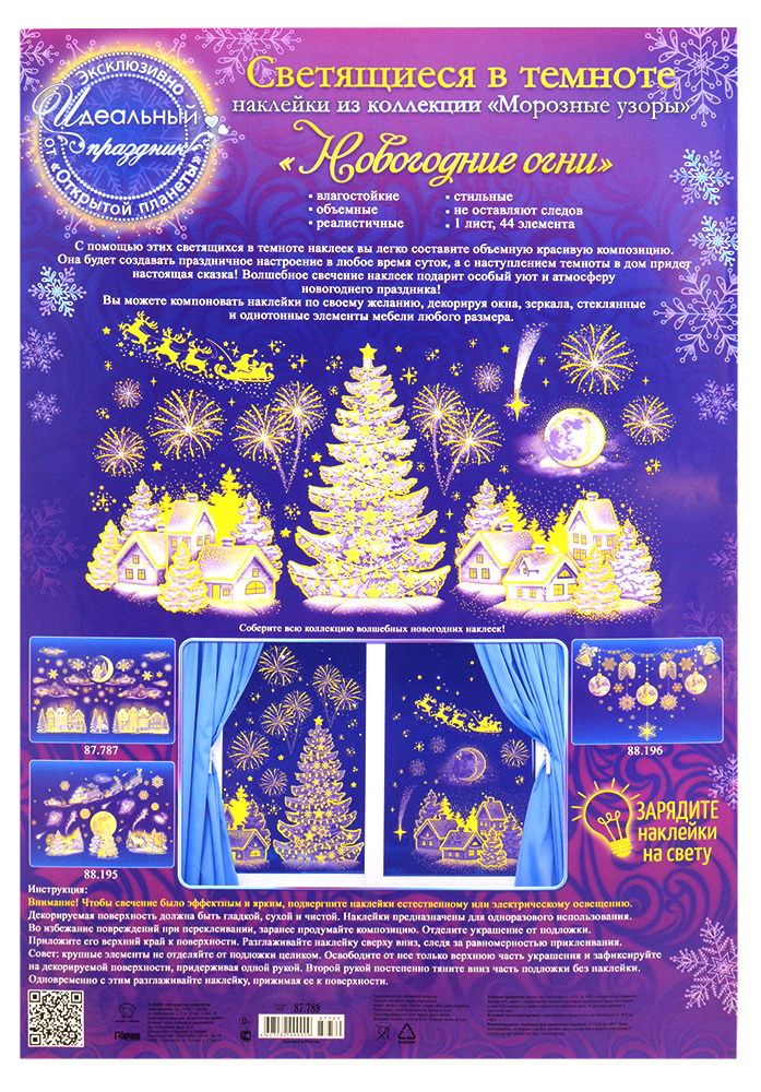 Наклейки оформительские светящиеся "Новогодние огни" 33*47 см 87.789*