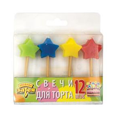 - В упаковке 12 свечей (3 желтых, 3 зеленых, 3 красных, 3 синих).