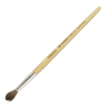 Кисть для рисования из натурального волоса.Закругленный деревянный черенок выполнен из качественной древесины. Нержавеющая металлическая обойма без шва. Кисть хорошго держит форму и отлично подходит для детского творчества.