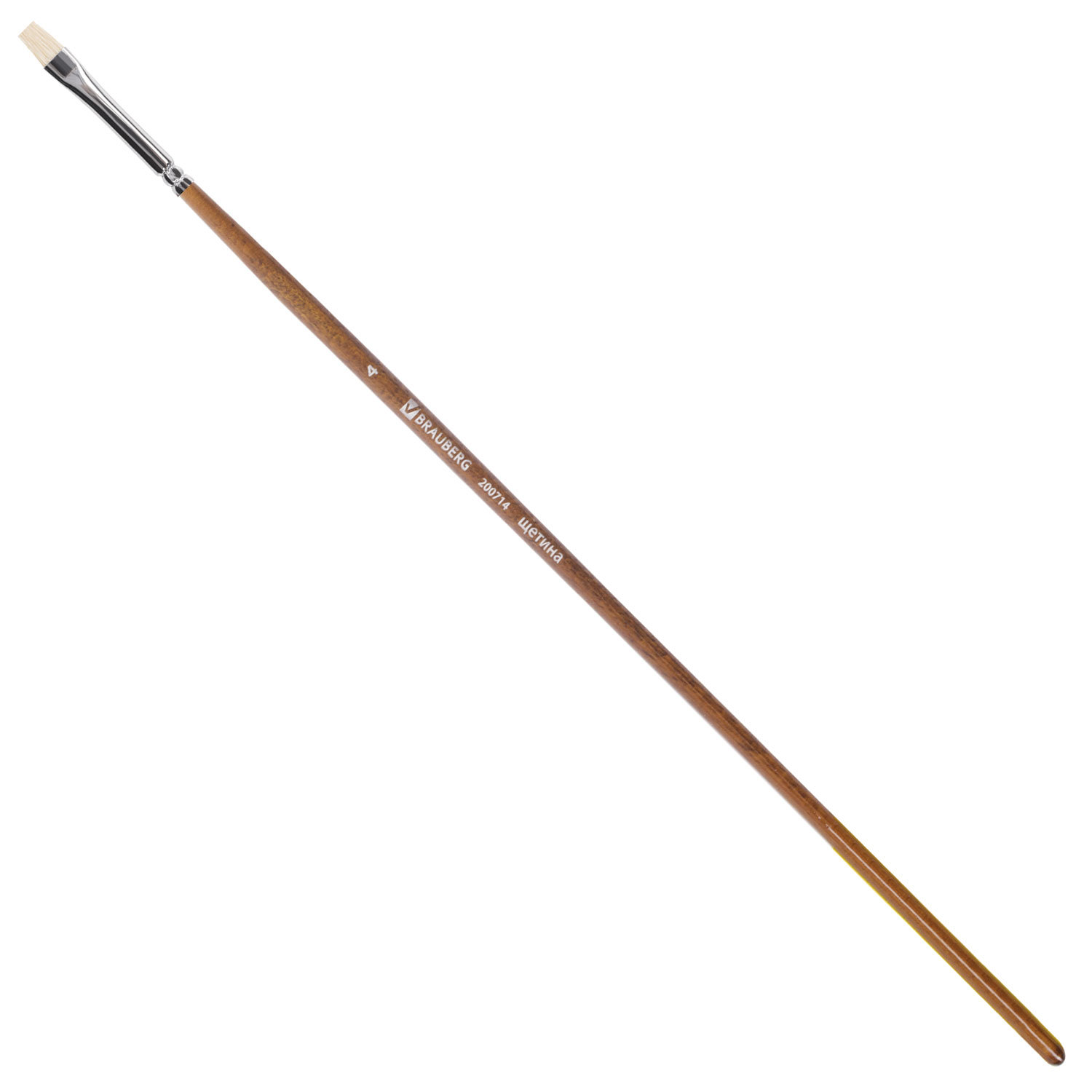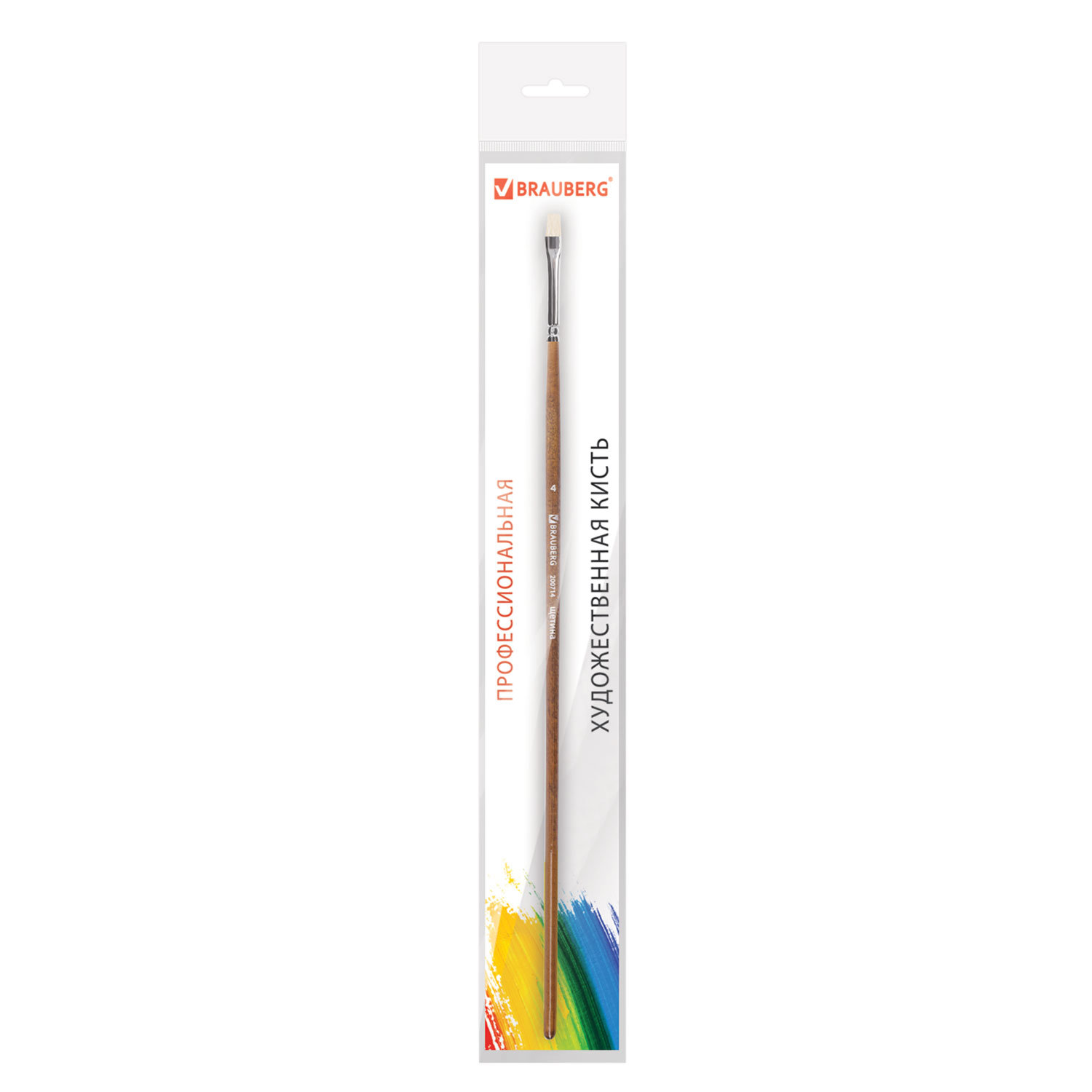 Кисть художественная профессиональная BRAUBERG ART "CLASSIC", щетина, плоская, № 4, длинная ручка, 200714