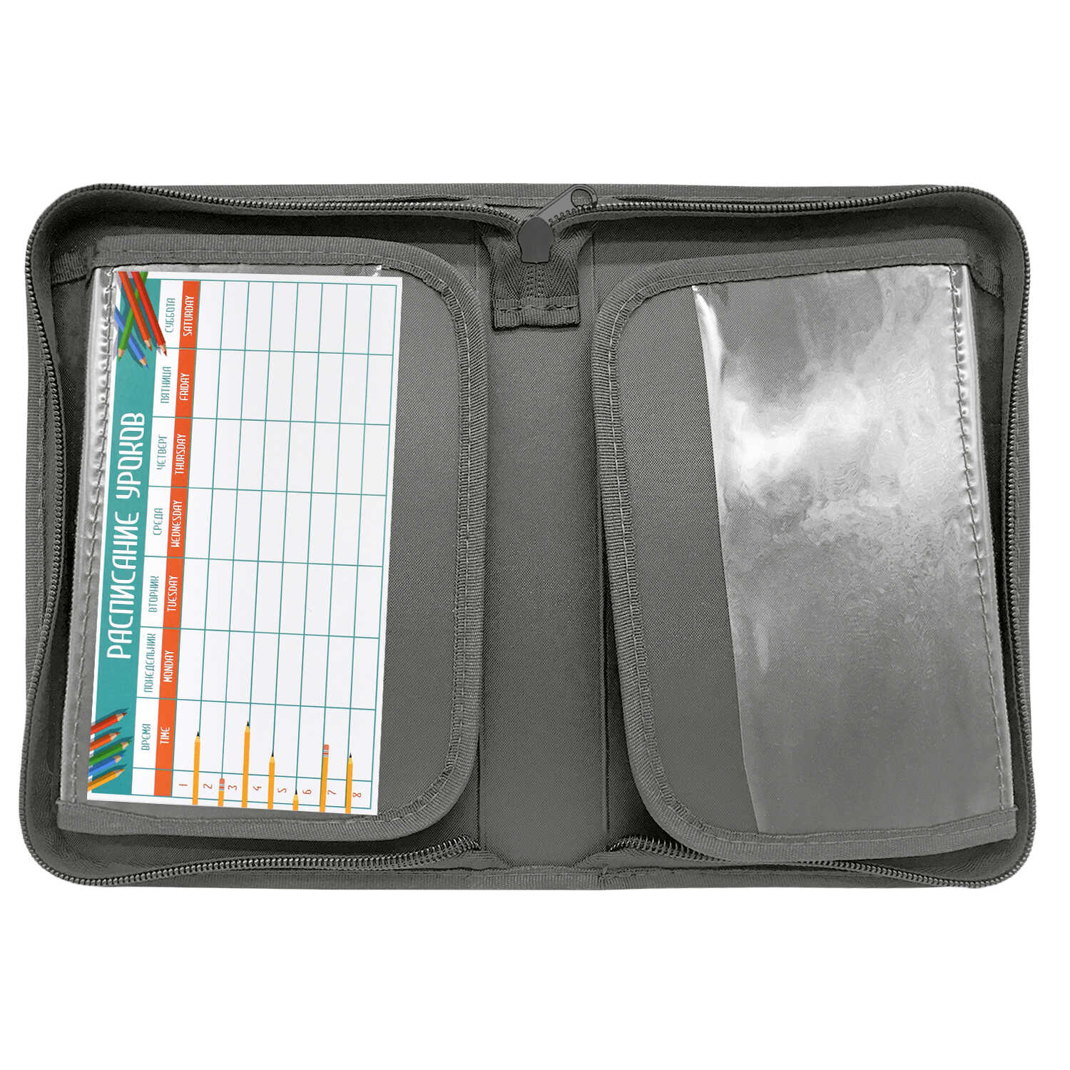 - Особенности - опрозрачные карманы на откидных планках, с двумя откидными планками, таблица для заполнения расписания уроков