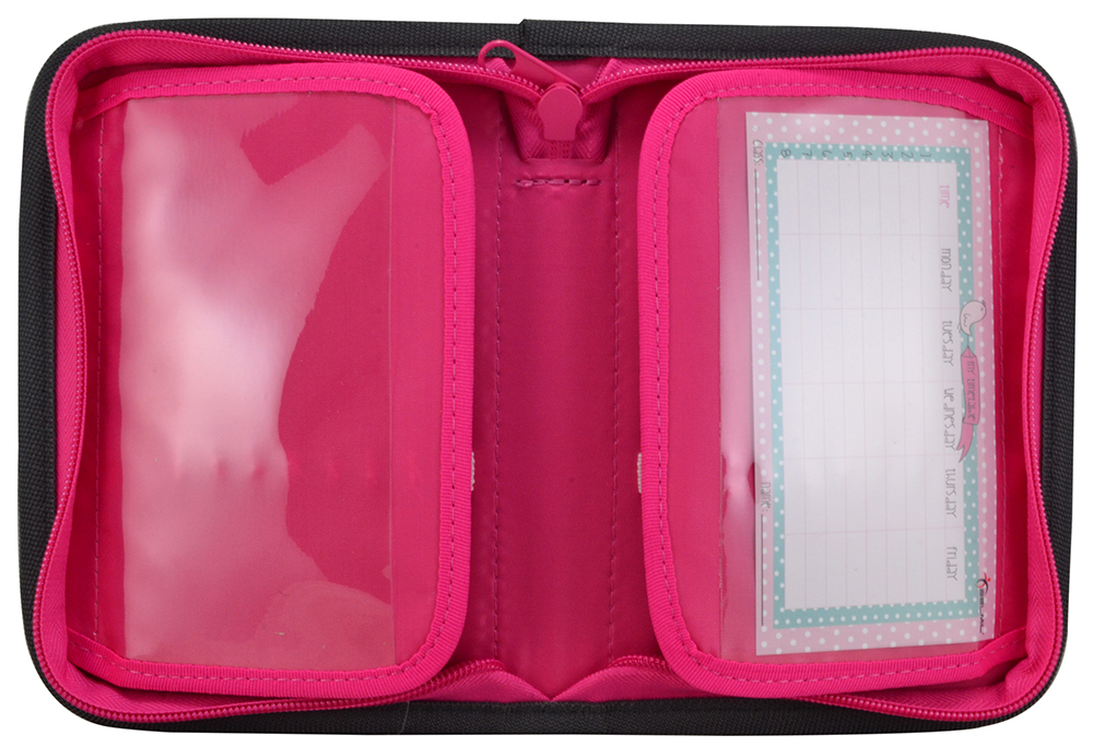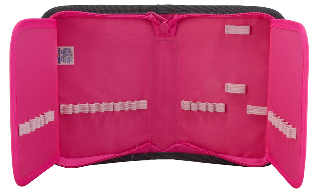 Он достаточно вместительный и в нём может разместиться большое количество разнообразных канцелярских предметов. Внутри пенала есть специальные резиночки-держатели для карандашей, ручек, фломастеров и других пишущих принадлежностей.