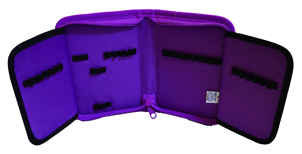Он достаточно вместительный и в нём может разместиться большое количество разнообразных канцелярских предметов. Внутри каждого пенала есть специальные резиночки-держатели для карандашей, ручек, фломастеров и других пишущих принадлежностей.