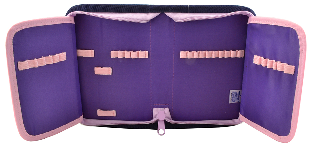 Он достаточно вместительный и в нём может разместиться большое количество разнообразных канцелярских предметов. Внутри каждого пенала есть специальные резиночки-держатели для карандашей, ручек, фломастеров и других пишущих принадлежностей.