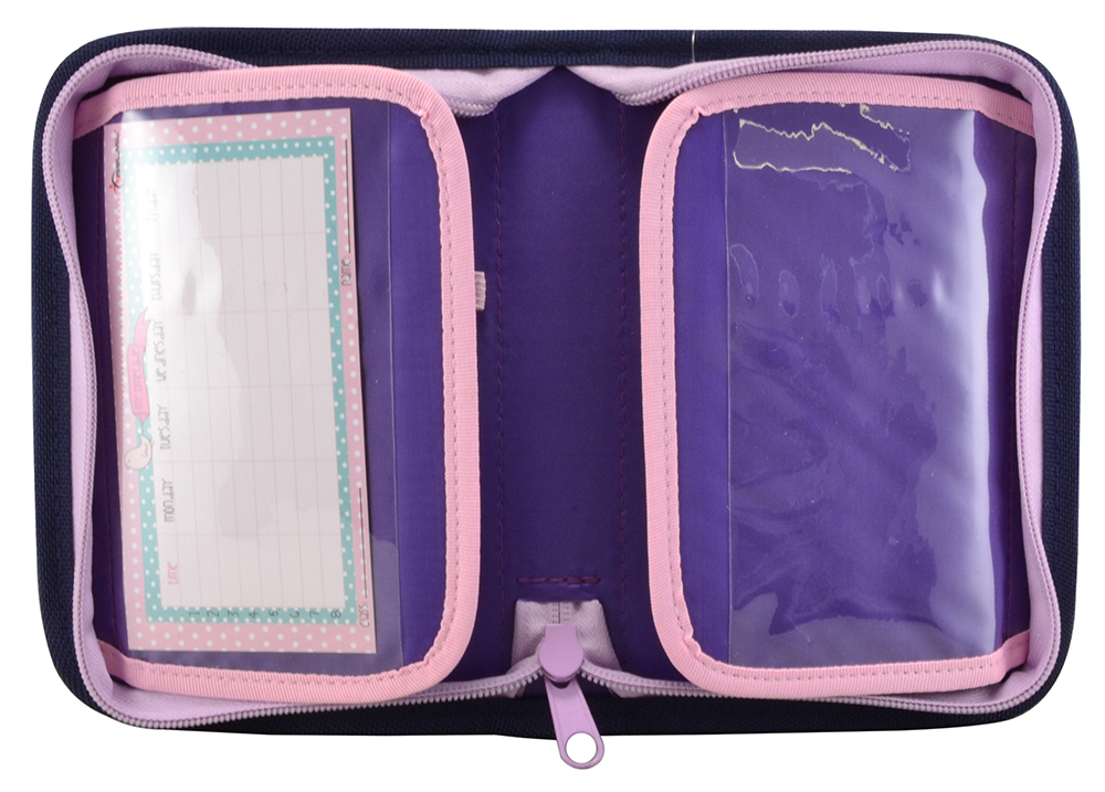 Он достаточно вместительный и в нём может разместиться большое количество разнообразных канцелярских предметов. Внутри каждого пенала есть специальные резиночки-держатели для карандашей, ручек, фломастеров и других пишущих принадлежностей.
