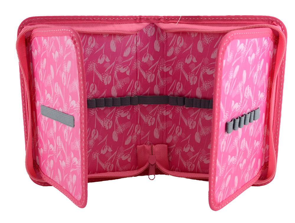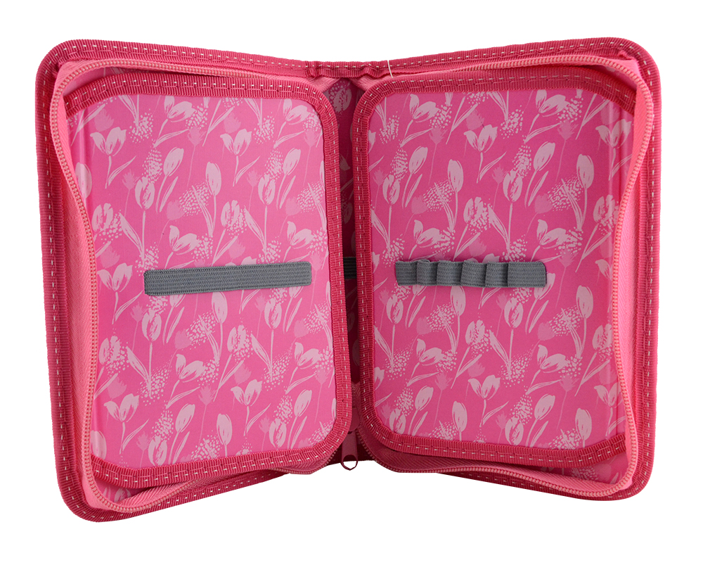 Он достаточно вместительный и в нём может разместиться большое количество разнообразных канцелярских предметов. Внутри пенала есть специальные резиночки-держатели для карандашей, ручек, фломастеров и других пишущих принадлежностей.