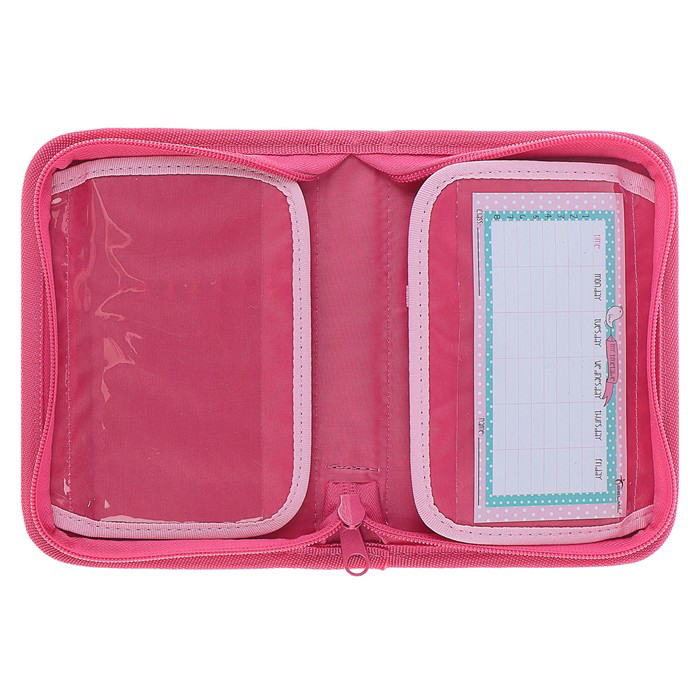 - Кроме одного основного отделения пенал обладает двумя откидывающимися створками