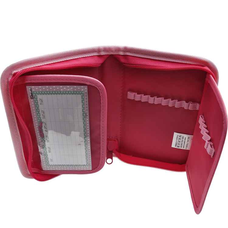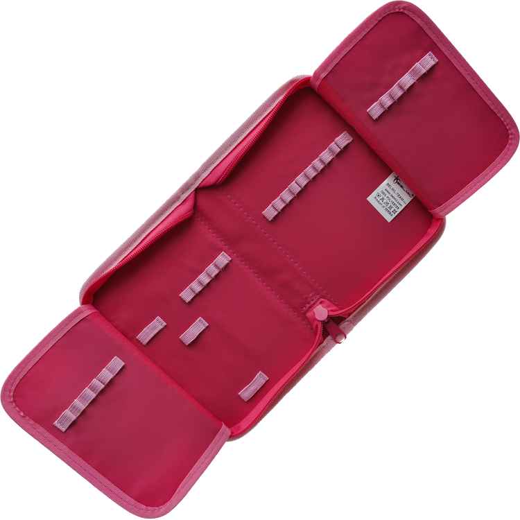 Он достаточно вместительный и в нём может разместиться большое количество разнообразных канцелярских предметов. Внутри пенала есть специальные резиночки-держатели для карандашей, ручек, фломастеров и других пишущих принадлежностей.