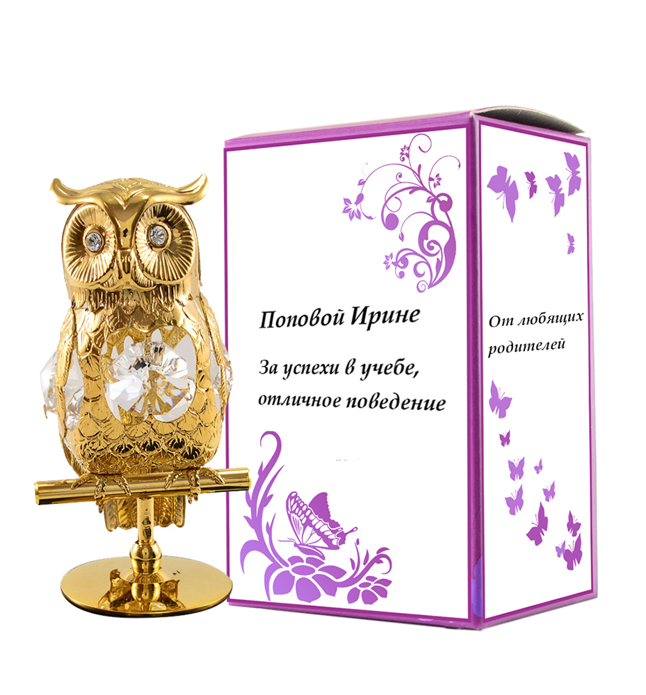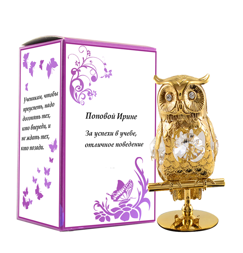 Красивая статуэтка из металла в виде филина инкрустирована эксклюзивными кристаллами Swarovski. Станет отличным подарком для педагогов или выпускников детских садов и школ, легко украсит любой интерьер домашнего очага или рабочего места, а памятная надпись на подарочной коробке сделает этот подарок особенным и запоминающимся!