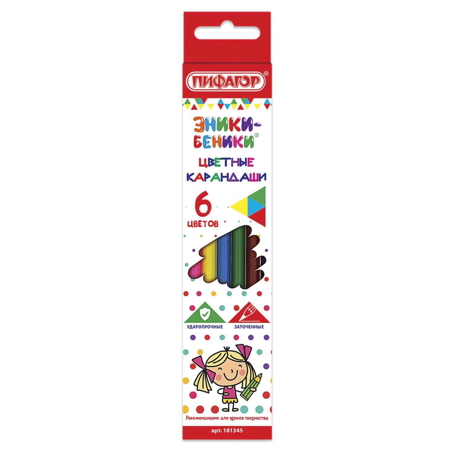 Карандаши цветные ПИФАГОР "ЭНИКИ-БЕНИКИ", 6 цветов, классические заточенные, 181345