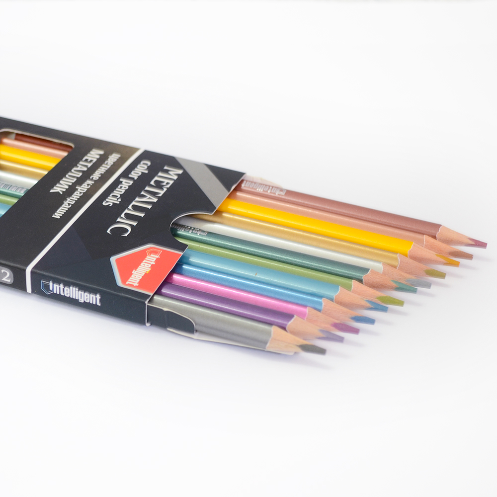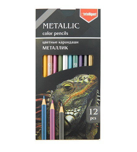 Карандаши 12 цветов INTELLIGENT CD-7001 "Металлик" деревянные, заточенные*