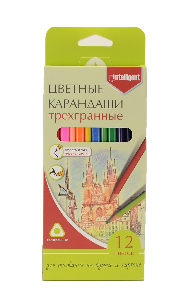 Карандаши цветные 12 цветов 2M INTELLIGENT трехгранные 304439 Bl-182