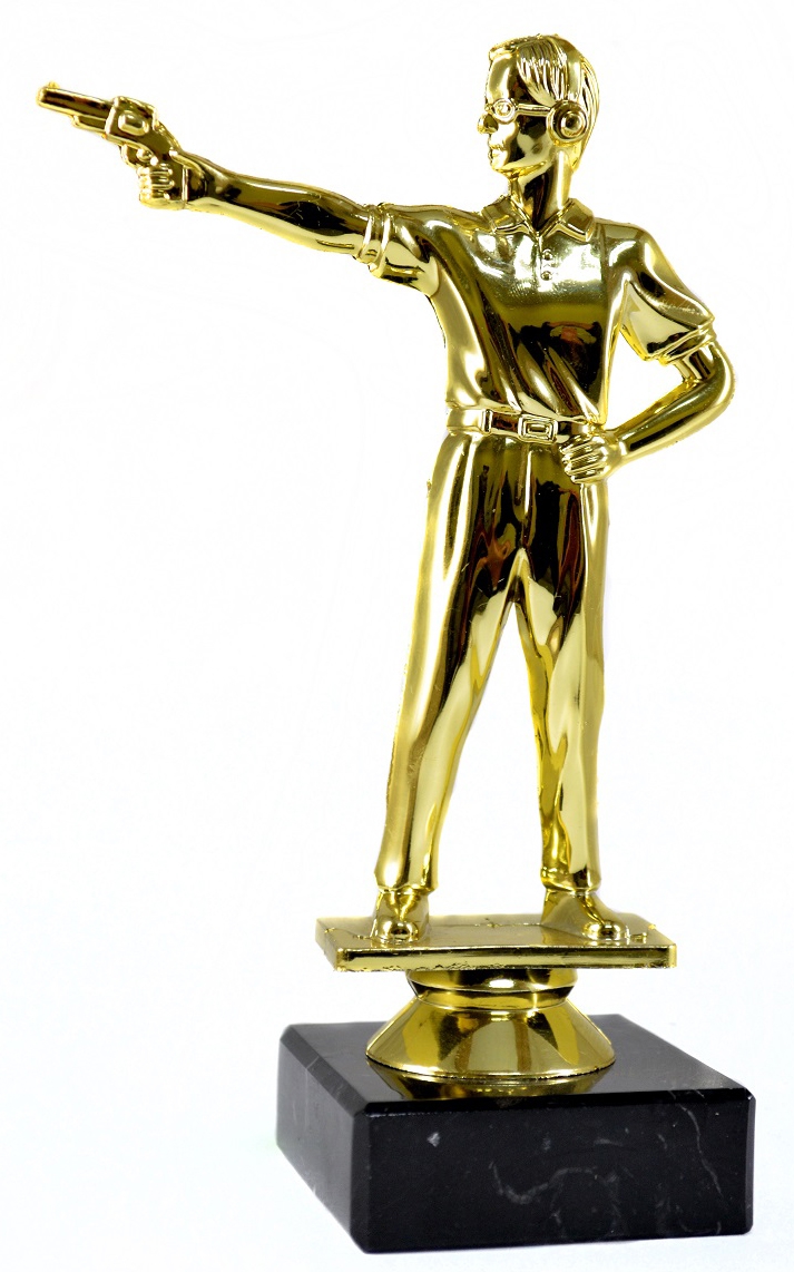 Статуэтка из пластика высотой 14 см, покрыта золотым напылением.