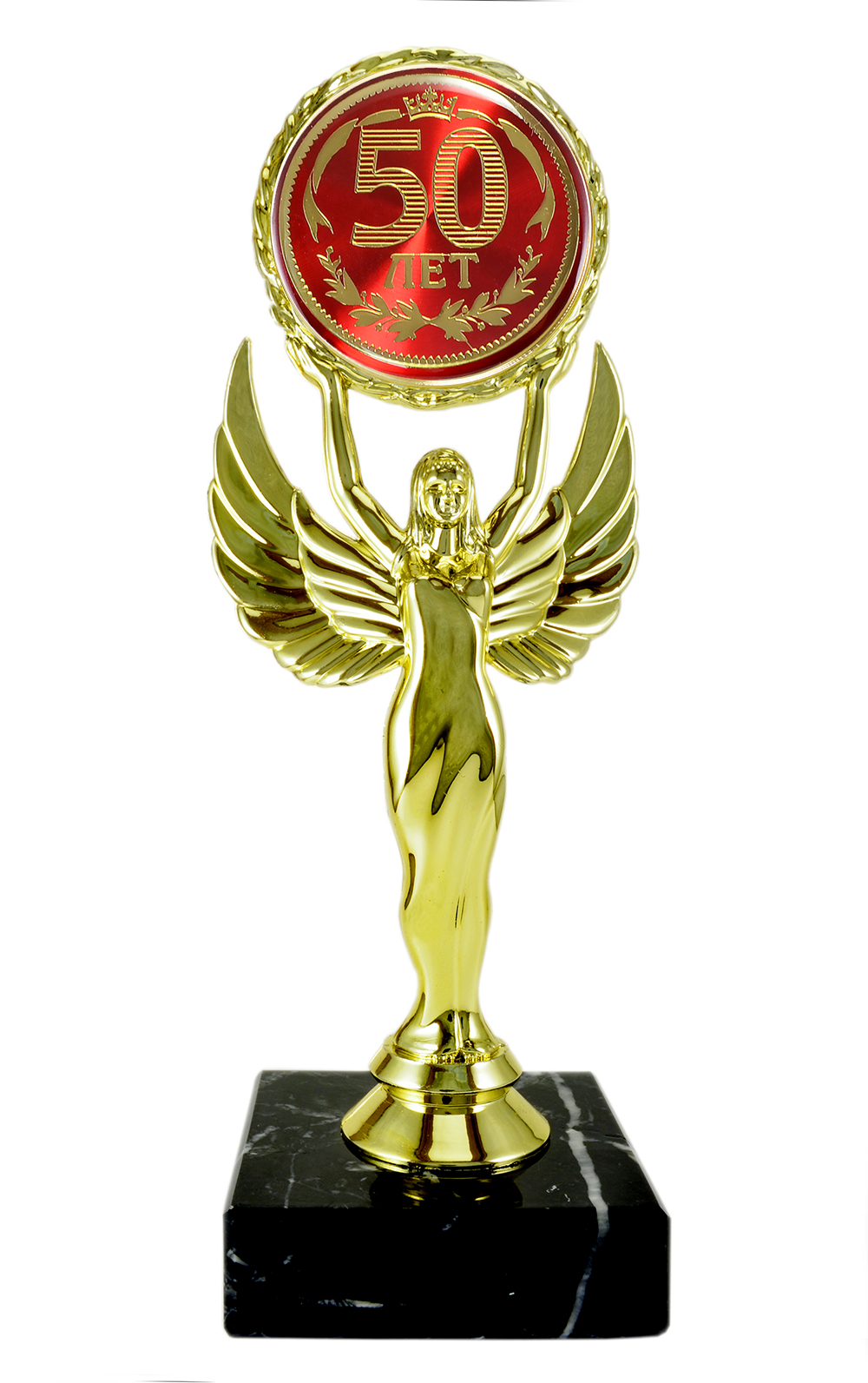 Статуэтка Ника с эмблемоносителем на мраморном камне "С Юбилеем 50 лет"