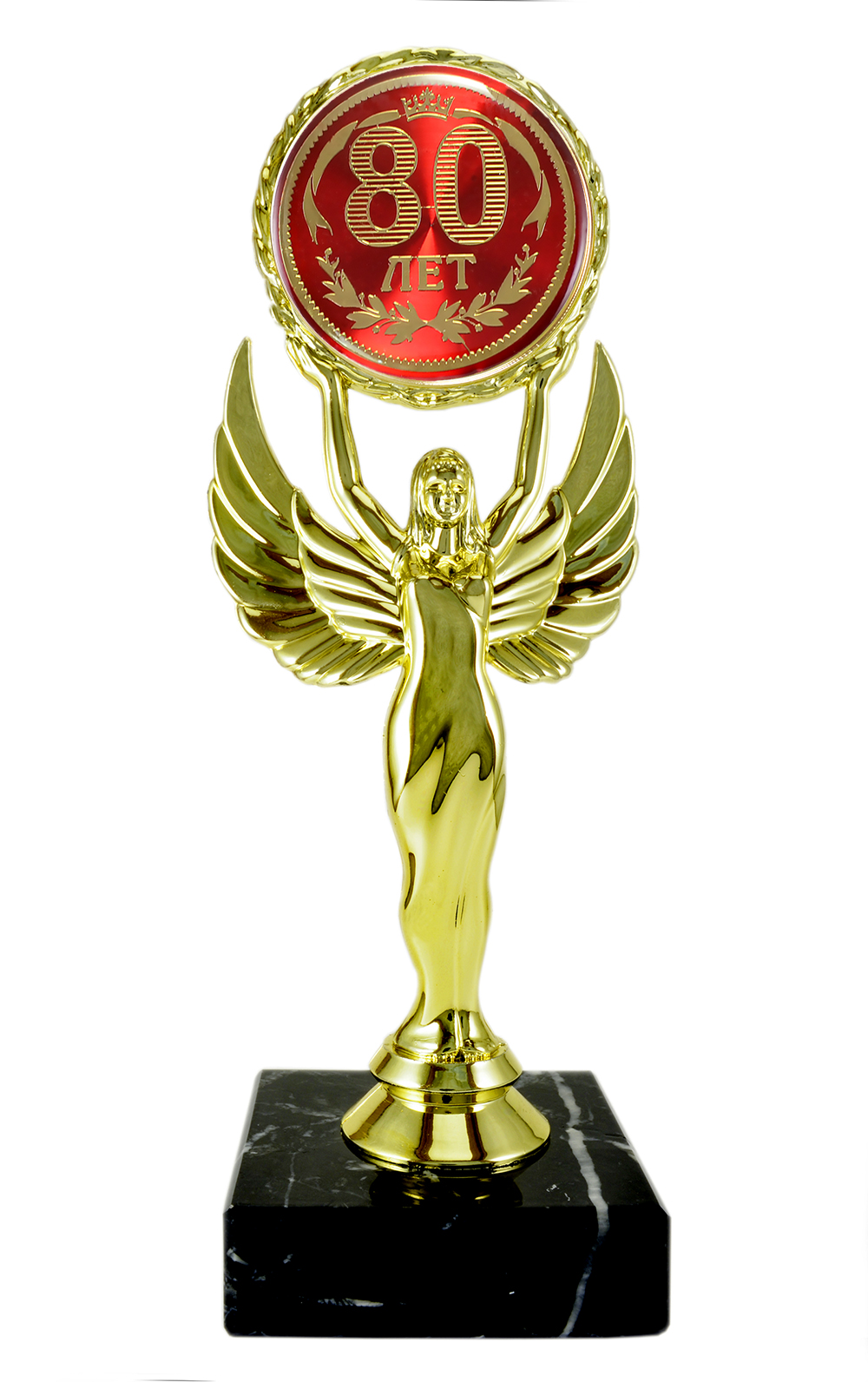 Статуэтка Ника с эмблемоносителем на мраморном камне "С Юбилеем 80 лет"
