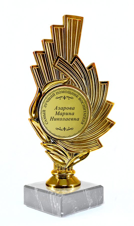 Образец именной гравировки на статуэтке Венок *Самый лучший помощник воспитателя*