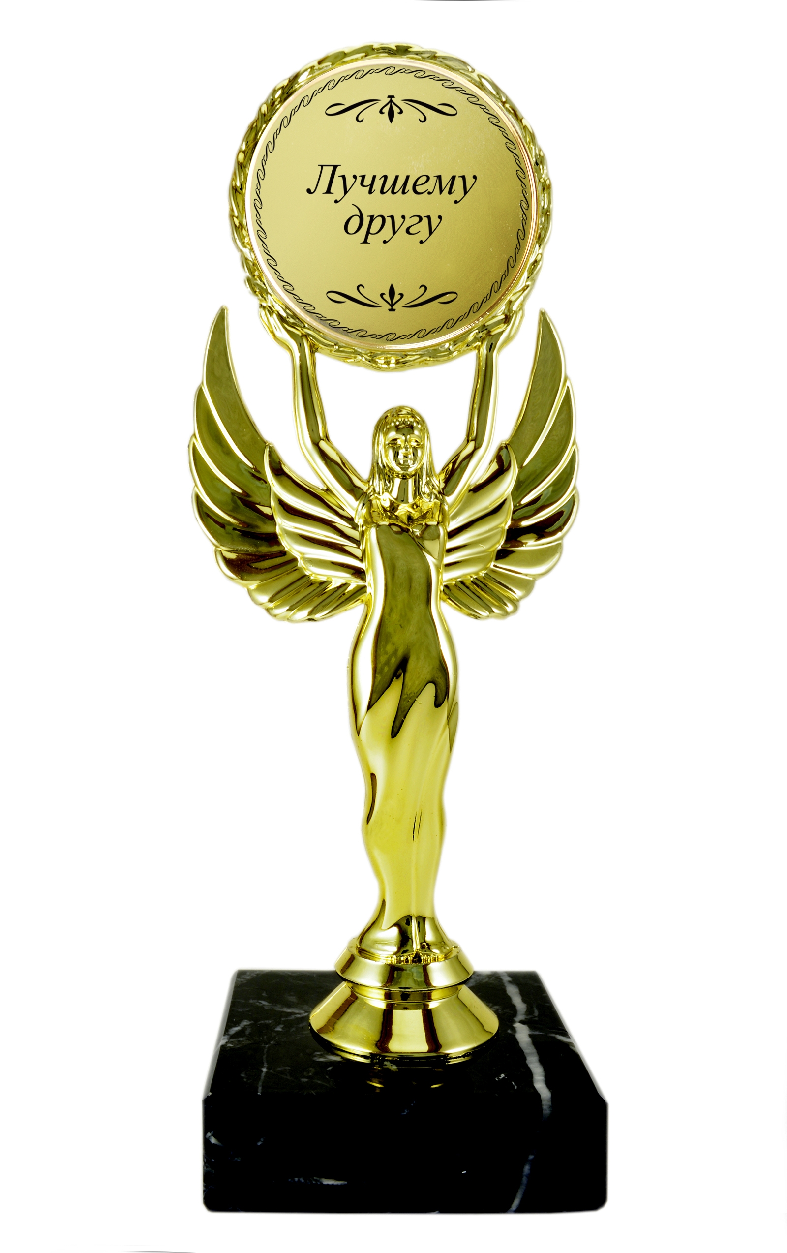 Статуэтка Ника с эмблемоносителем на мраморном камне *Лучшему другу*