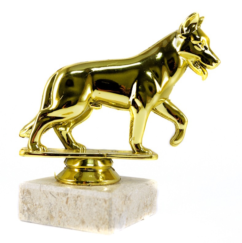 Статуэтка из пластика высотой 9 см, покрыта золотым напылением.