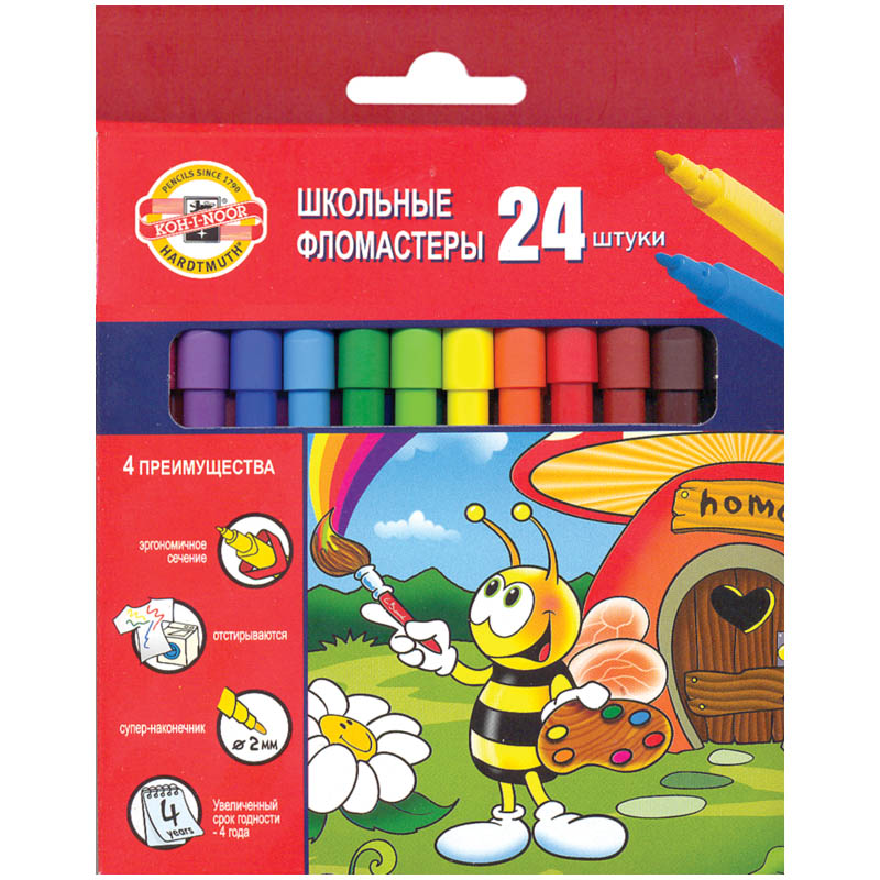 Фломастеры Koh-I-Noor "Пчелка" 24 цвета, трехгранные 771002BD06KS
