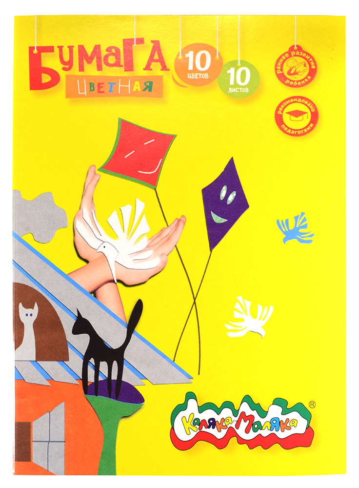 Бумага цветная 10 листов, 10 цветов, А4, Каляка-Маляка 109087