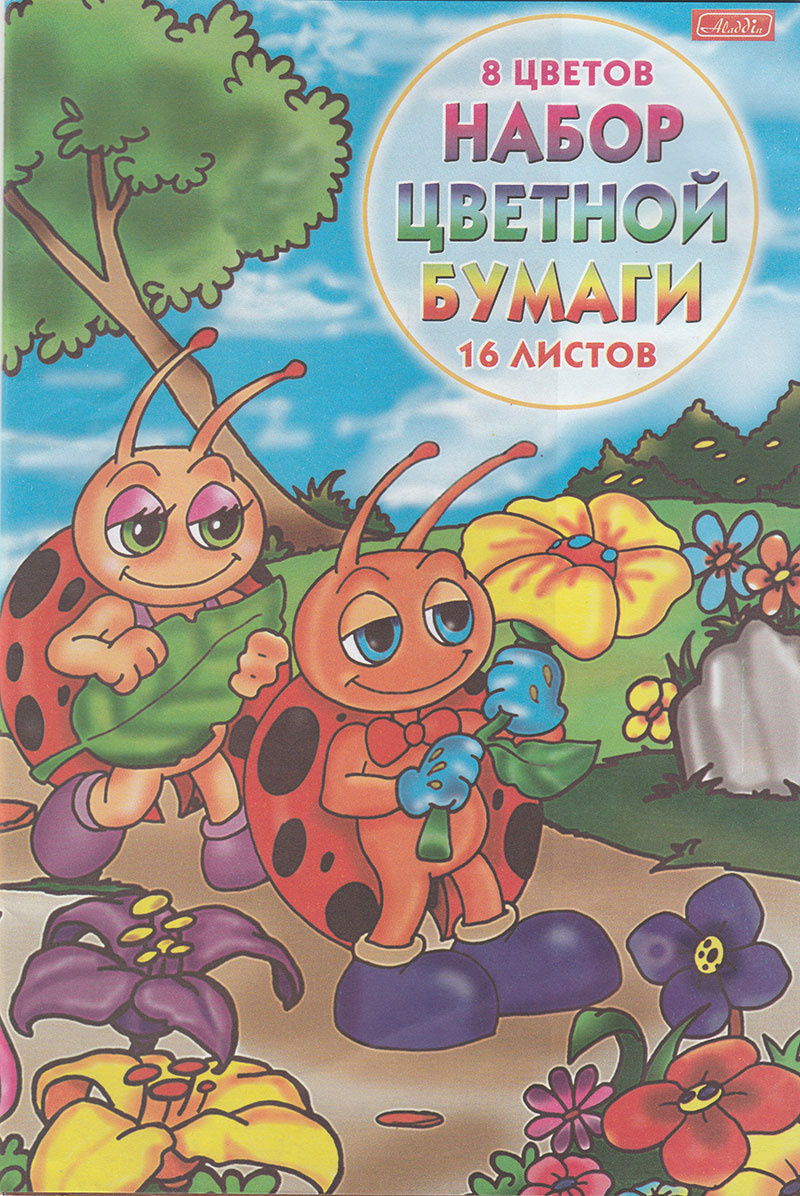 Бумага цветная А4 16 листов, 8 цветов "Божьи коровки"