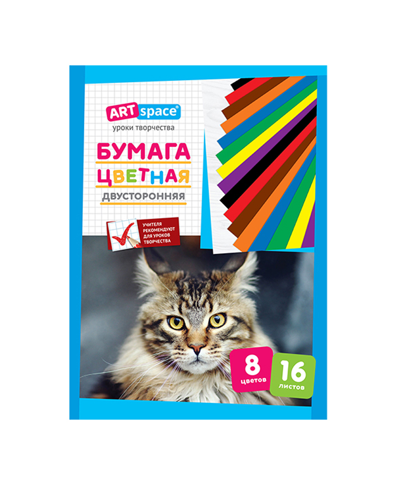 Цветная бумага двухсторонняя А4 ArtSpace 16 листов 8 цветов 152939
