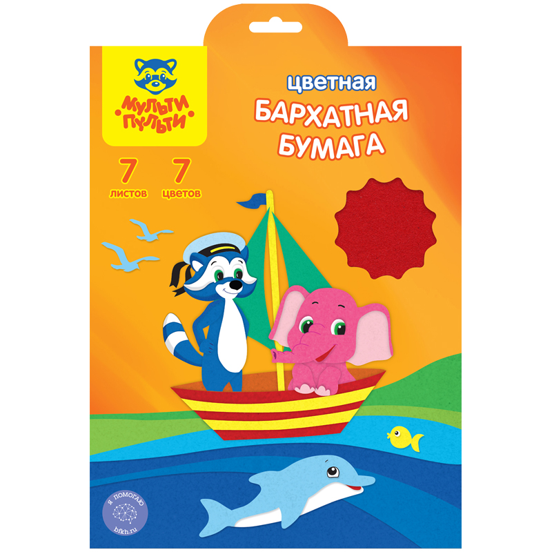 Бумага бархатная А4, 7 листов, 7 цветов, Мульти-Пульти, 252579