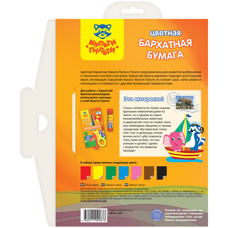 Бумага формата А4 с нанесенным флоком (ворсом), имитирует поверхность бархатной ткани и отличается насыщенностью, глубиной тона, плотностью. В папке с замком для удобного хранения и европодвесом 7 листов различных 7 цветов. Бархатная бумага является прекрасным декоративным материалом. Она широко применяется для выполнения декоративных и художественно-оформительских работ, изготовления сувениров, изделий флористики, аппликаций.
