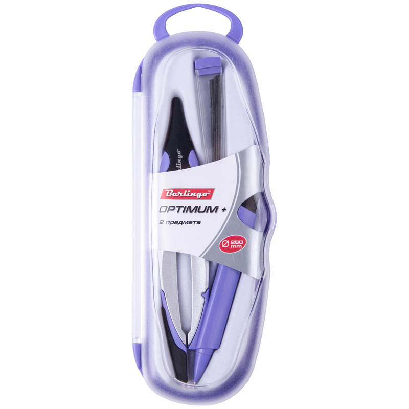 - Количество предметов – 2 (циркуль с эргономичной головкой+пенал с дополнительным грифелем)
