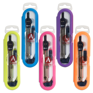 Готовальня предназначена для школьных чертежных работ. Циркуль выполнен из латуни, что гарантирует удобство при работе с ним. Готовальня упакована в пластиковый пенал яркого неонового цвета с удобной откидывающейся крышкой без шарнира. Страна производитель - Италия.