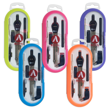 Готовальня предназначена для школьных чертежных работ. Циркуль выполнен из латуни, что гарантирует удобство при работе с ним. Готовальня упакована в пластиковый пенал яркого неонового цвета с удобной откидывающейся крышкой без шарнира. Страна производитель - Италия.