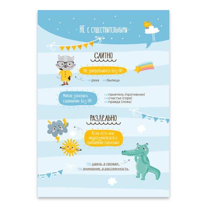 Набор веселых памяток по русскому языку для школьников в формате ярких карточек с забавными картинками поможет увлечь ребенка и задать тон всему учебному процессу в будущем. Карточки подходят для детей школьного возраста и помогут усвоить основные темы программы.