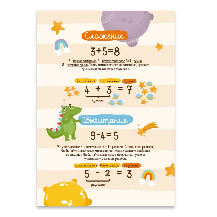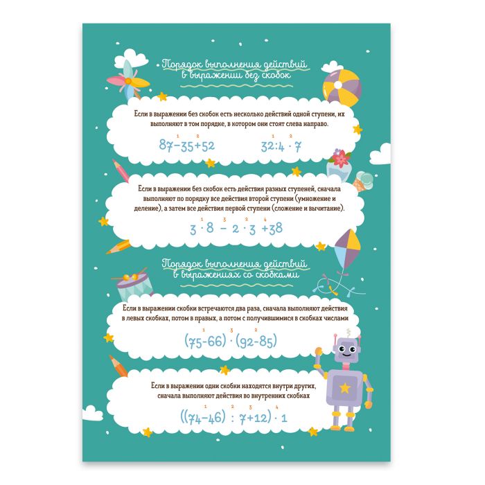 Набор веселых памяток по математике для школьников в формате ярких карточек с забавными картинками поможет увлечь ребенка и задать тон всему учебному процессу в будущем. Карточки подходят для детей школьного возраста и помогут усвоить основные темы программы.