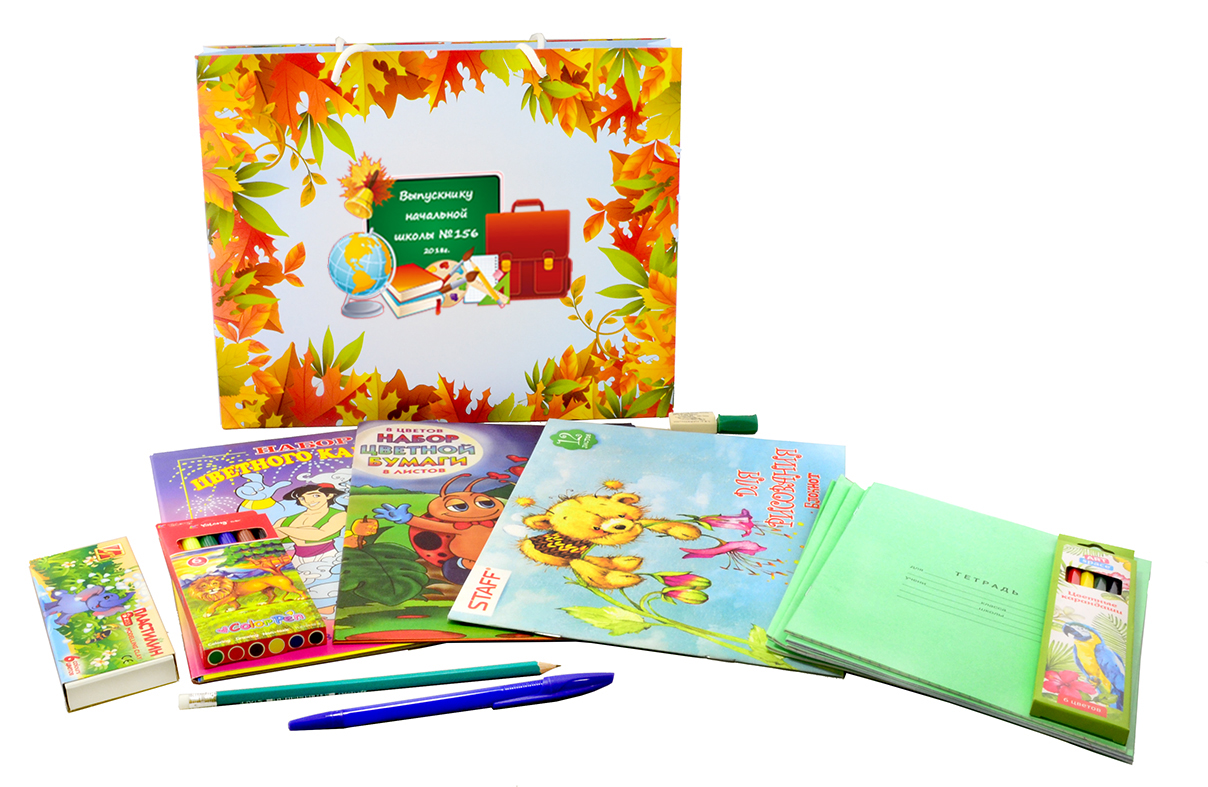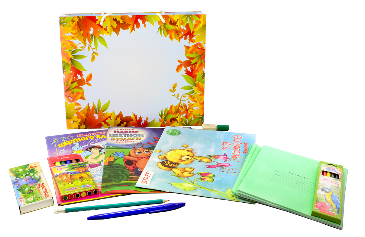 Набор канцелярских принадлежностей для будущего первоклассника! Набор укомплектован в пакет с крепкими ручками.