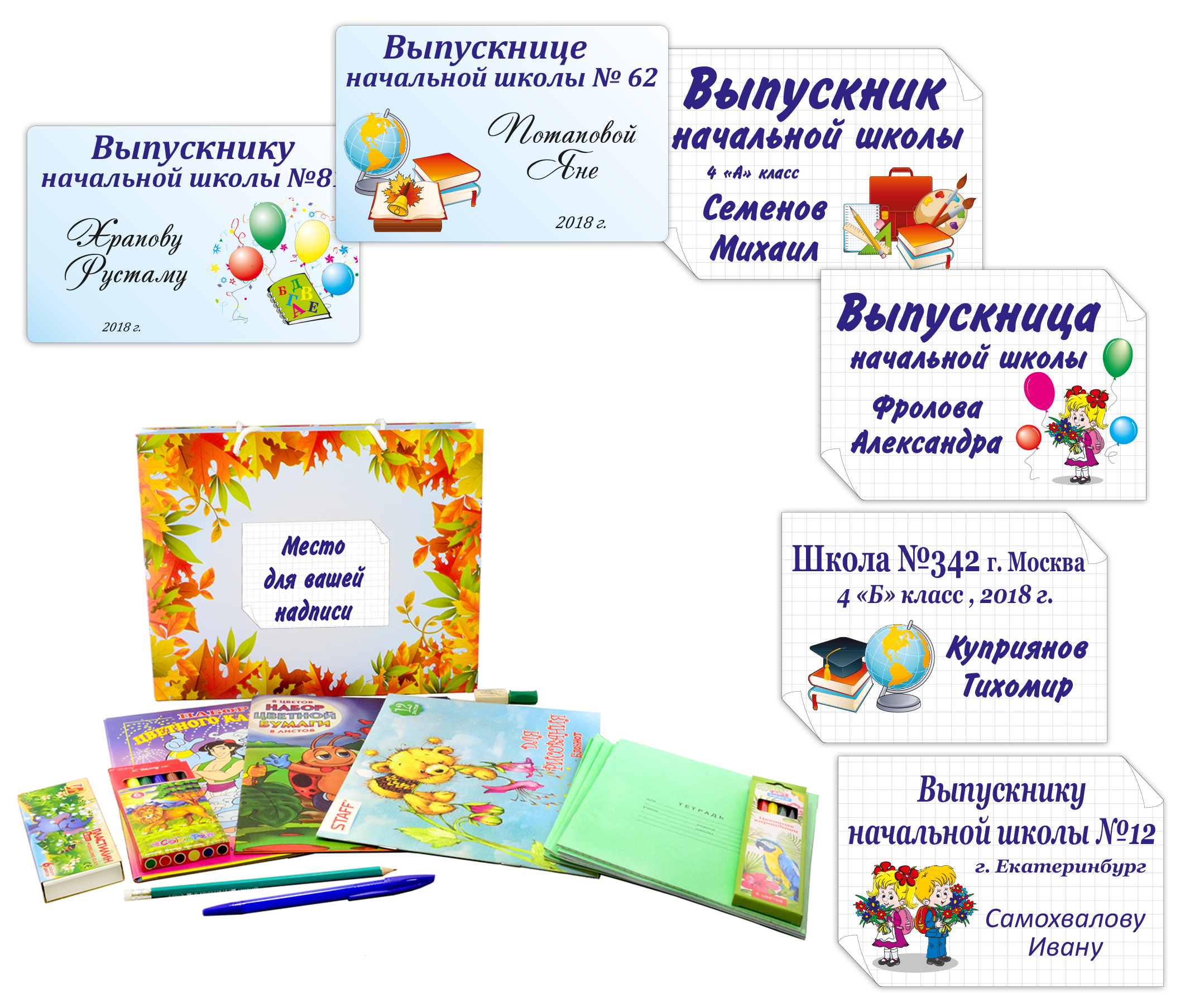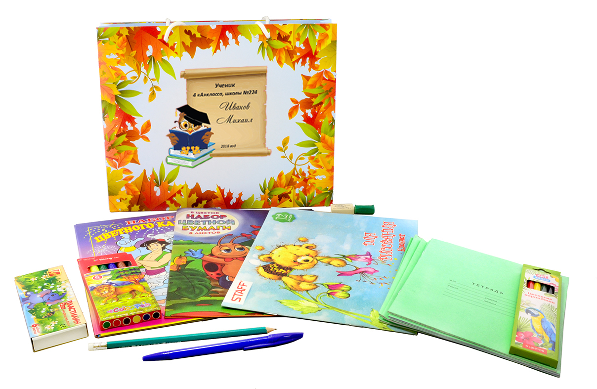 На лицевой стороне пакета - место для индивидуальной информации (на карточке возможно указать номер учебного заведения, имя, фамилию ребенка или любую другую индивидуальную информацию). Данная услуга входит в стоимость канцелярского набора.
