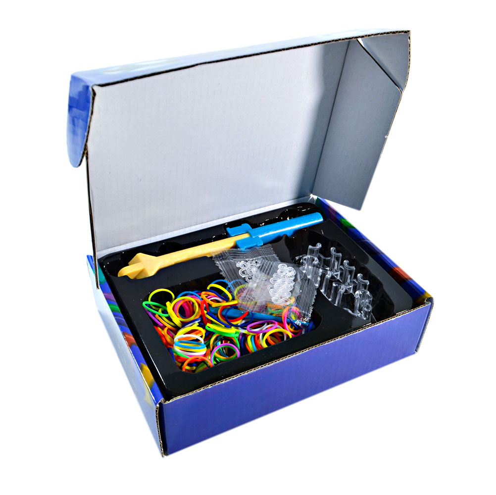 Набор состоит из ярких резиночек разных цветов и ткацкого станка. Кроме того, в комплект входят крючок для плетения, клипсы для фиксации отдельных элементов и инструкция. При работе у детей задействована мелкая моторика, развивается внимательность, усидчивость, творческая фантазия. Поделки с удовольствием демонстрируются друзьям, у них появляются новые темы для общения и совместных занятий. Все изделия можно расплести и создать что-то новое.