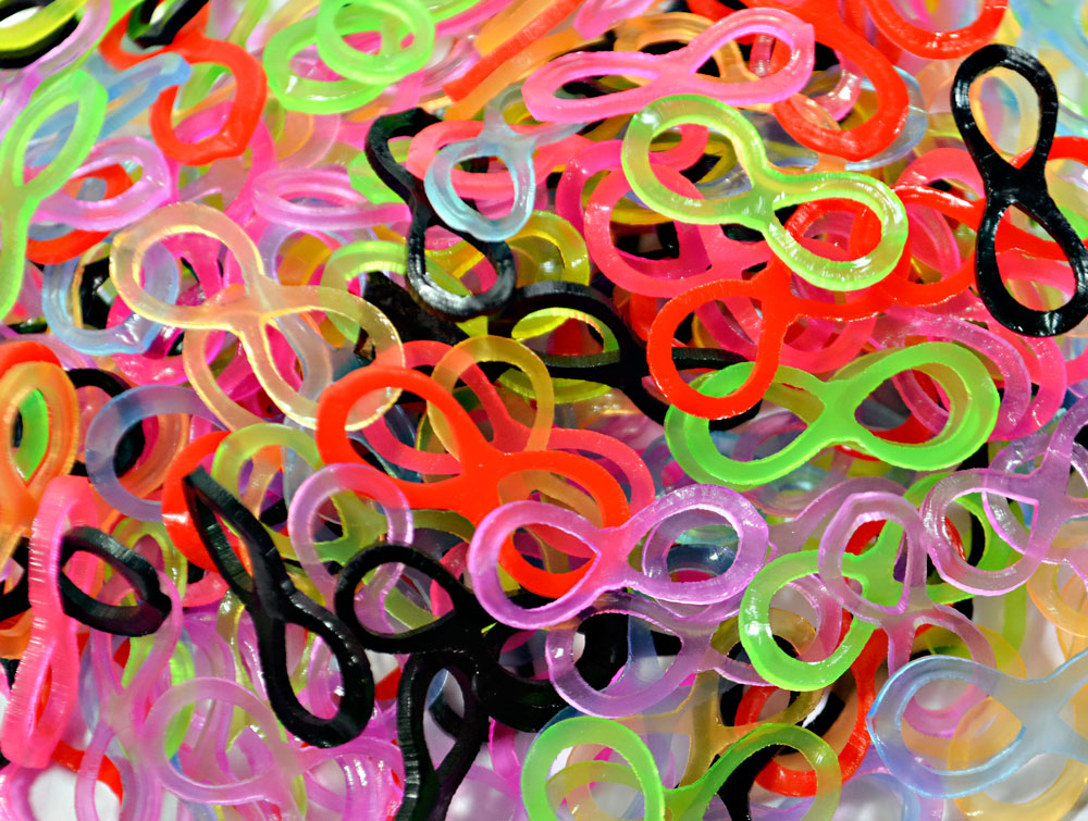 Набор состоит из ярких резиночек разных цветов. При работе у детей задействована мелкая моторика, развивается внимательность, усидчивость, творческая фантазия. Поделки с удовольствием демонстрируются друзьям, у них появляются новые темы для общения и совместных занятий. Все изделия можно расплести и создать что-то новое.