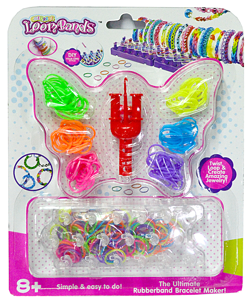 Набор состоит из 200 шт ярких резиночек разных цветов, рогатки для плетения и крючка. При работе у детей задействована мелкая моторика, развивается внимательность, усидчивость, творческая фантазия. Поделки с удовольствием демонстрируются друзьям, у них появляются новые темы для общения и совместных занятий. Все изделия можно расплести и создать что-то новое. Упаковка-блистер в виде бабочки.