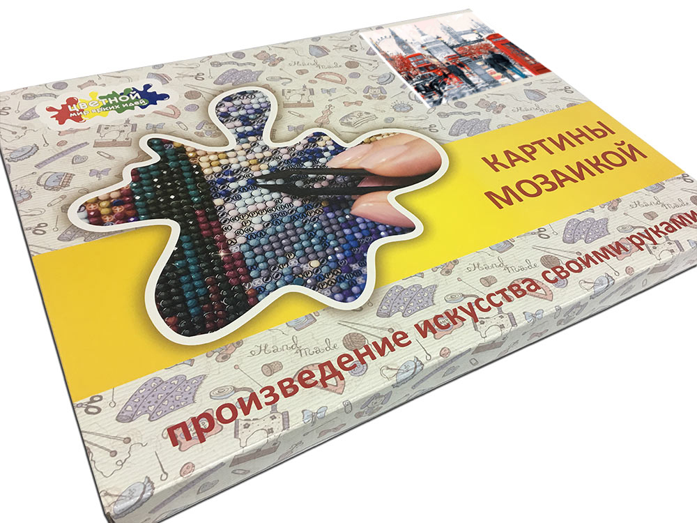 - В наборе: холст, стразы, лоток для страз, пинцет, сухой клей, пластиковый карандаш, крепление для картины, инструкция