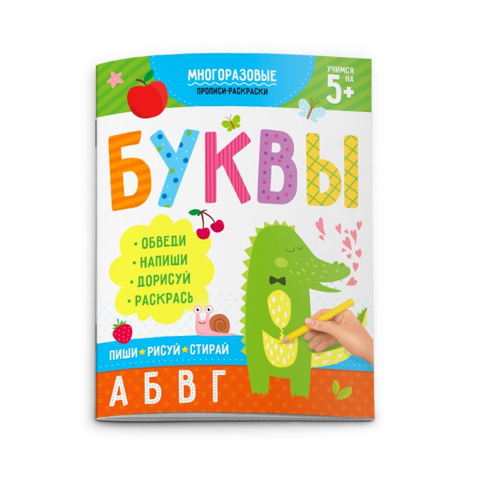 Серия включает все необходимые прописи для обучения малыша правильному написанию букв и цифр. С помощью увлекательных упражнений ребёнок потренируется рисовать линии и узоры, научится писать буквы и цифры, разовьёт мелкую моторику рук, координацию движений, внимательность и аккуратность. Серия подходит для первых занятий – следы фломастера легко стираются влажной салфеткой.