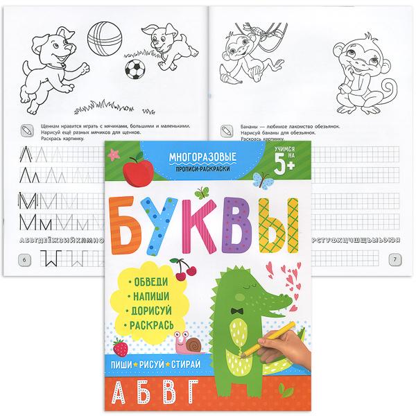 Раскраска-пропись "Пиши-рисуй-стирай" БУКВЫ