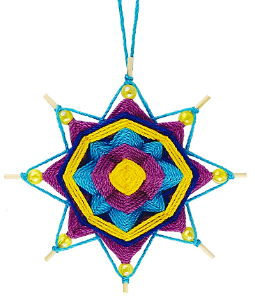 Луна и звезды на темнеющем фиолетово-синем небе – это "Вечер". Эффектное плетение в виде звезды – в исполнении совсем не сложное. Переливающиеся акриловые бусины, нанизанные на палочки, придают изделию праздничность. Такая цветная подвеска уместна и на новогодней ёлке, и на люстре, и везде, где подскажет ваша фантазия!