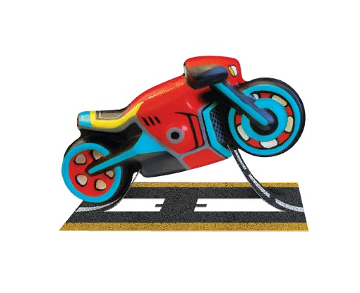 Раскрашенный мотоцикл помещается на специальную подставку, которая уже есть в комплекте. Фигурку можно также покрыть лаком или блестками — в этом вашу фантазию ничто не ограничивает. Мотоцикл станет хорошей игрушкой, поделкой для детского сада или школы, сувениром или подарком близкому человеку.
