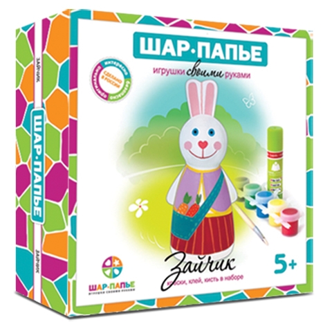 Вот такой милый зайчик поселится у вас дома! Придумайте для него интересный наряд и не забудьте про морковку! Наборы серии «Шар-папье» — это радостное и увлекательное творчество для всей семьи. Дети без труда соберут объемную фигурку зайчика и раскрасят ее, а взрослые смогут проявить свои дизайнерские таланты.