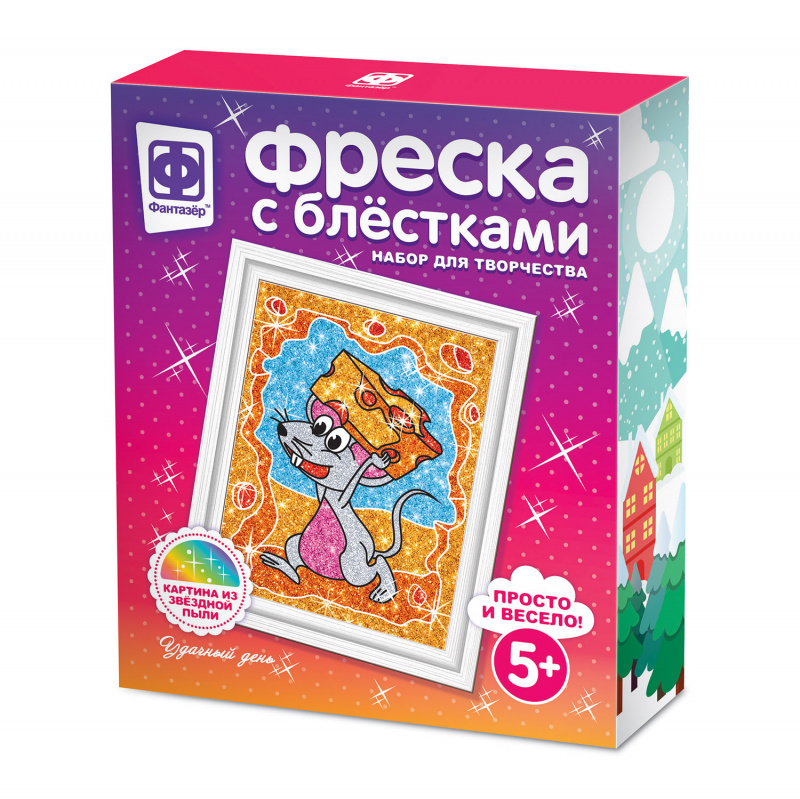 - В наборе: двухслойная основа, цветные блестки, шаблон-инструкция, рамка