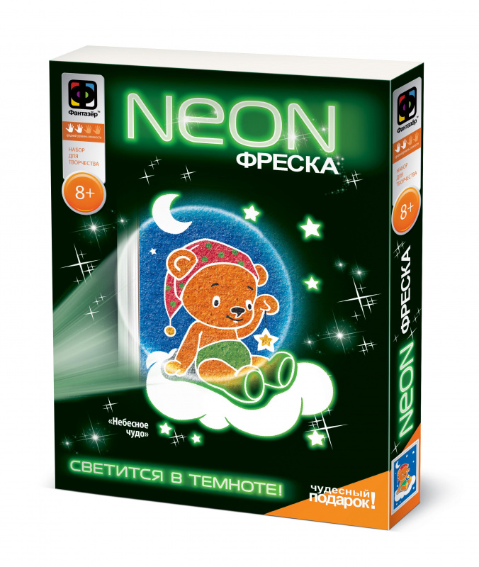 Набор для творчества. Неоновая фреска "Небесное чудо. Мишка в колпачке"
