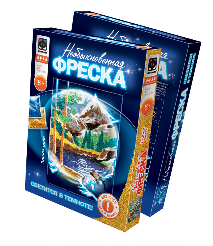 - В наборе: трехслойная основа, комплект цветного песка, фотолюминофор, заготовка рамки, стек, шаблон-инструкция