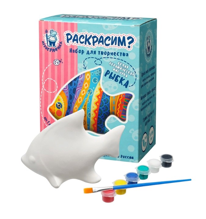 - В наборе: белая керамическая фигурка, кисточка, краски 6 цветов
