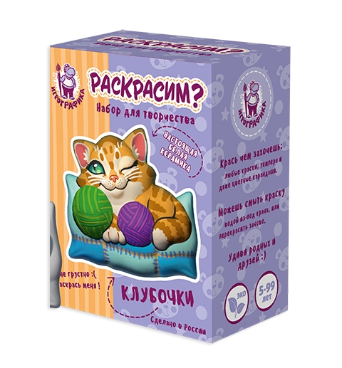 Пушистый котик играет с клубочками – такую милую сцену может оживить каждый с помощью нашего набора для творчества. Расписывайте белую заготовку по своему вкусу, пользуйтесь красками из набора или другими художественными материалами. Любые цвета ровно лягут на гладкую поверхность и не потекут.